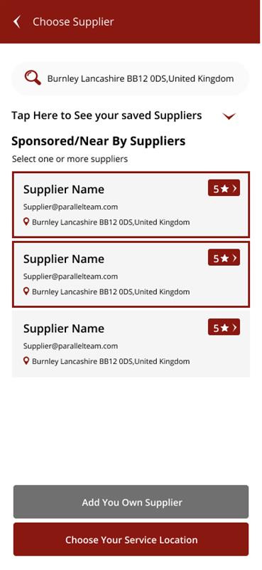User can quickly select multiple suppliers to obtain comparison quotes.